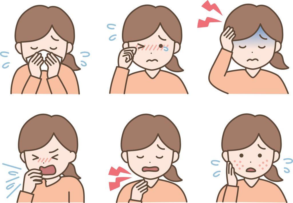 The typical symptoms of a cat allergy are very similar to the symptoms of other allergies. Here, too, they include increased respiratory problems, itchy eyes, watery eyes, skin rashes, coughing, hives, sneezing, a sore throat and headaches. Some cat-allergy sufferers also experience sleeping problems.